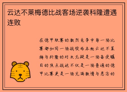 在德甲联赛的激烈竞争中,每一场比赛都如同一场战役,而本轮云达不莱梅与科隆的对决无疑是一场备受瞩目的焦点战。这不仅是一场普通的德甲比赛,更是一场充满激情与悬念的德比战。